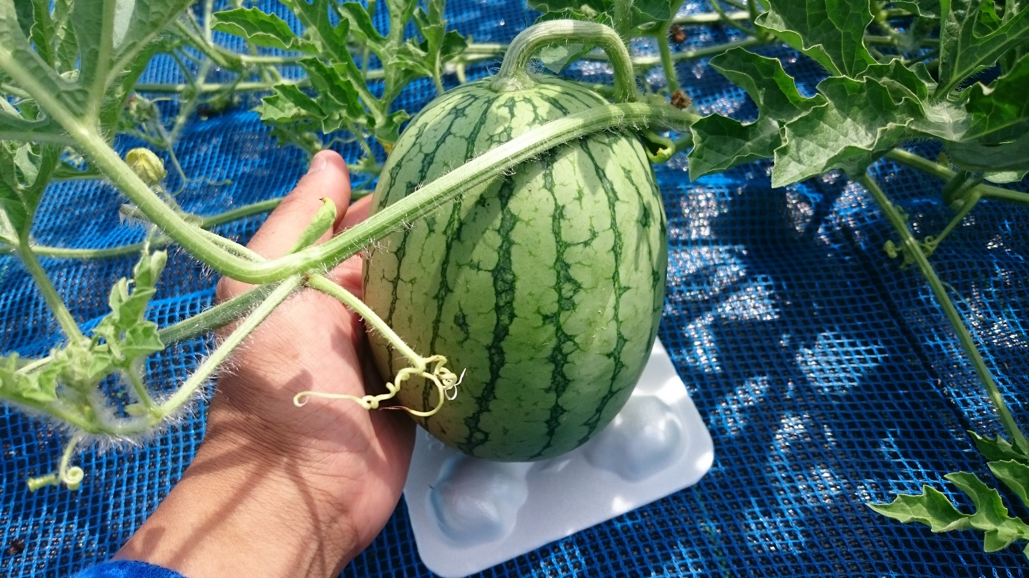 そろそろスイカのカラスよけを設置しなきゃって思ってたら、1週間で大きくなってました