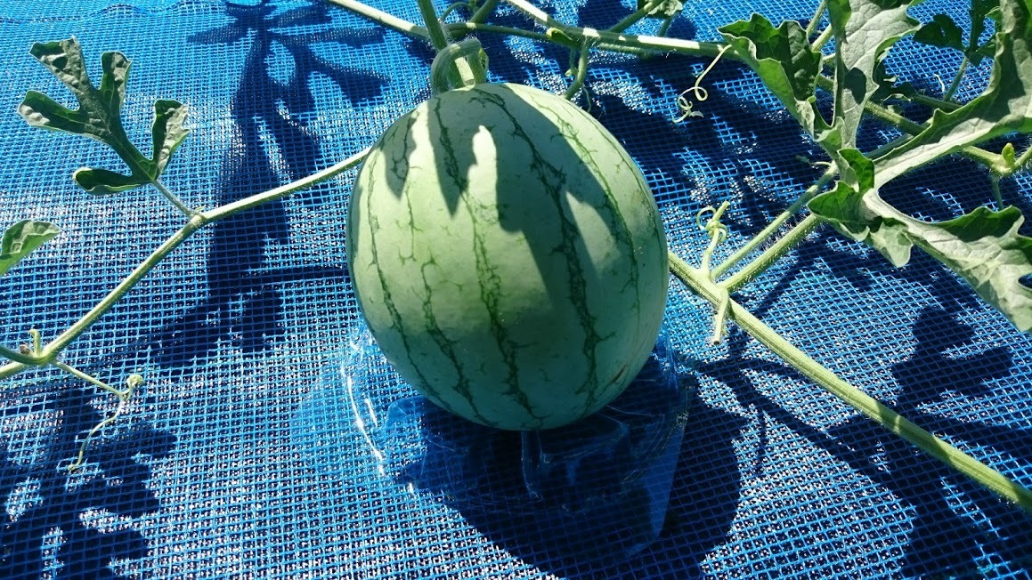 今日は、スイカ収穫の第1陣に『まくら』を設置。