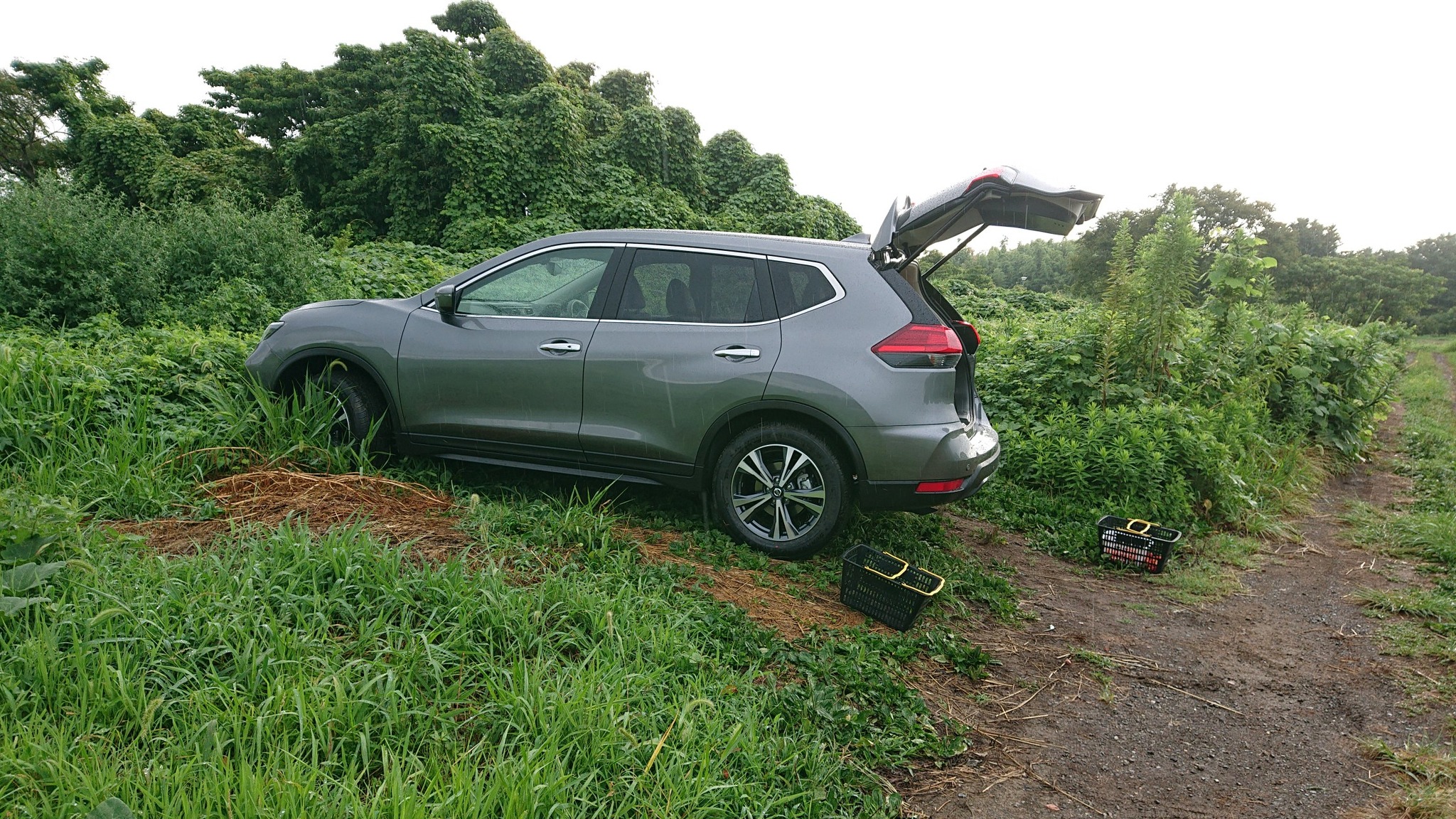 雷が怖かったので、納車されたばかりの新車で収穫に。