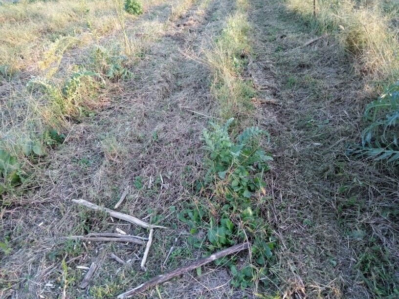 最初はハンマーナイフモアで刈高を高めに設定して、若葉が生えてなさそうなところだけを刈って行きます。殆ど経験と感で一気にやります。